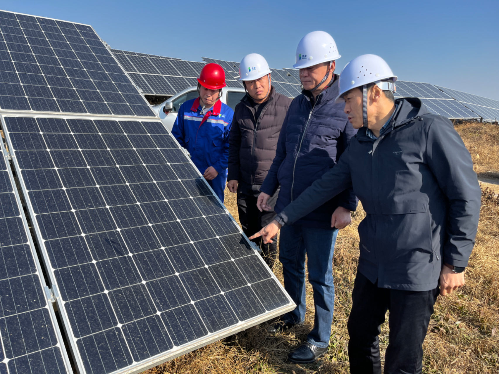 水發(fā)能源集團(tuán)副總經(jīng)理?xiàng)畹潞5揭司炫d光伏電站開展冬季防火安全督導(dǎo)