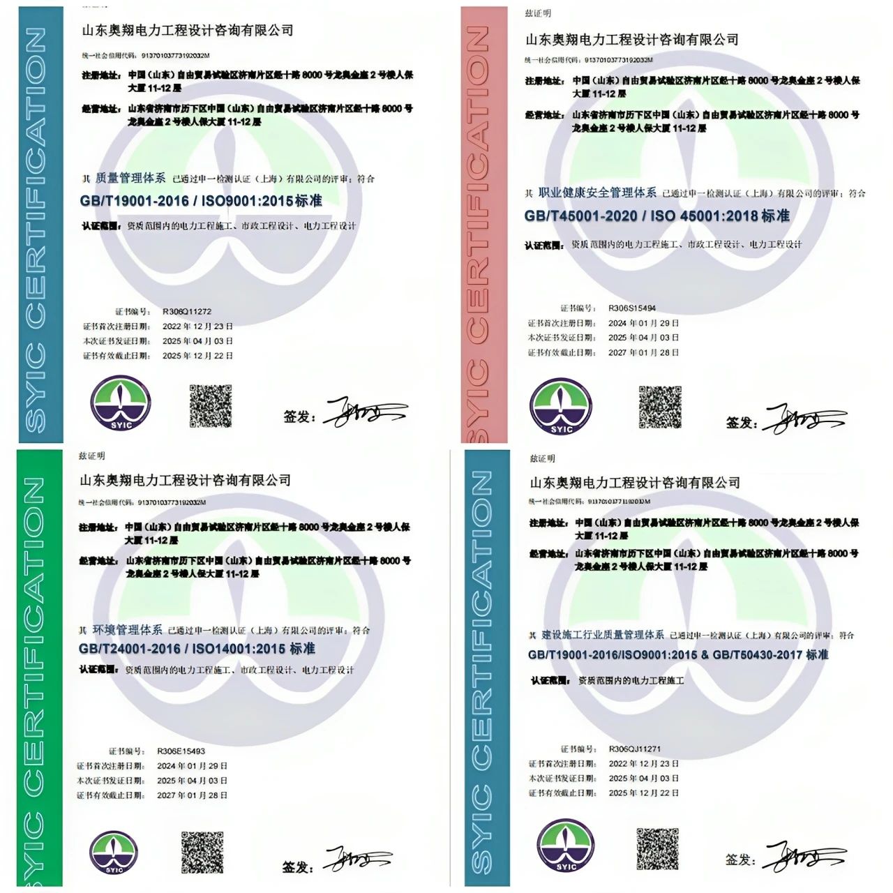 山東奧翔電力工程設(shè)計(jì)咨詢有限公司順利通過ISO三體系及GB/T 50430認(rèn)證